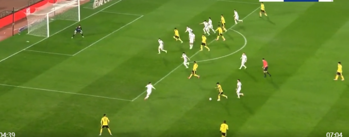 而在有球进攻时,青岛西海岸会大幅增加进攻端的投入人数,阵型会灵活调整为2-3-2-3